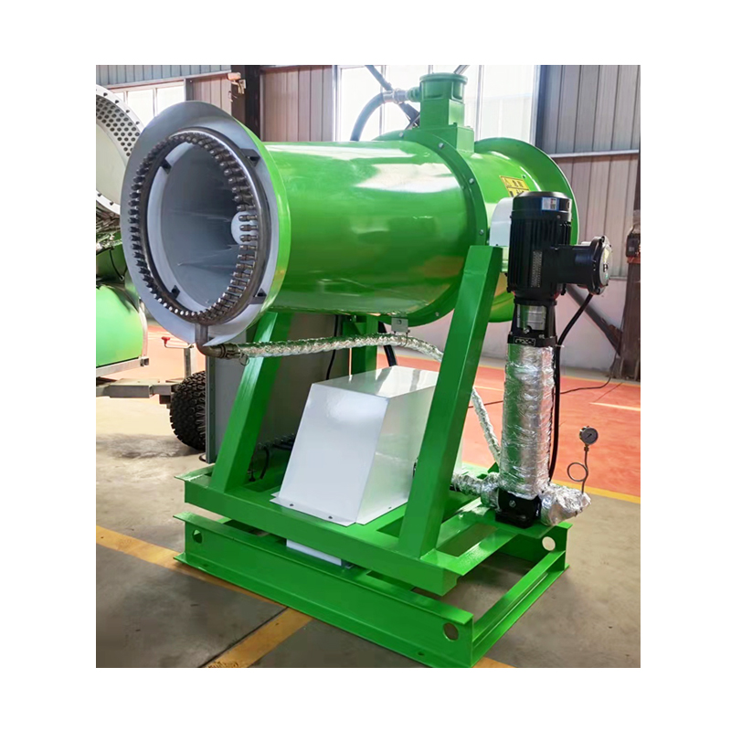 降尘炮系统是一种经过特殊设计,能够实现将均匀连续混合物(水,空气,添加剂)喷射超远距离的专利产品,成雾水滴尺寸均匀可控,喷射流指向性。